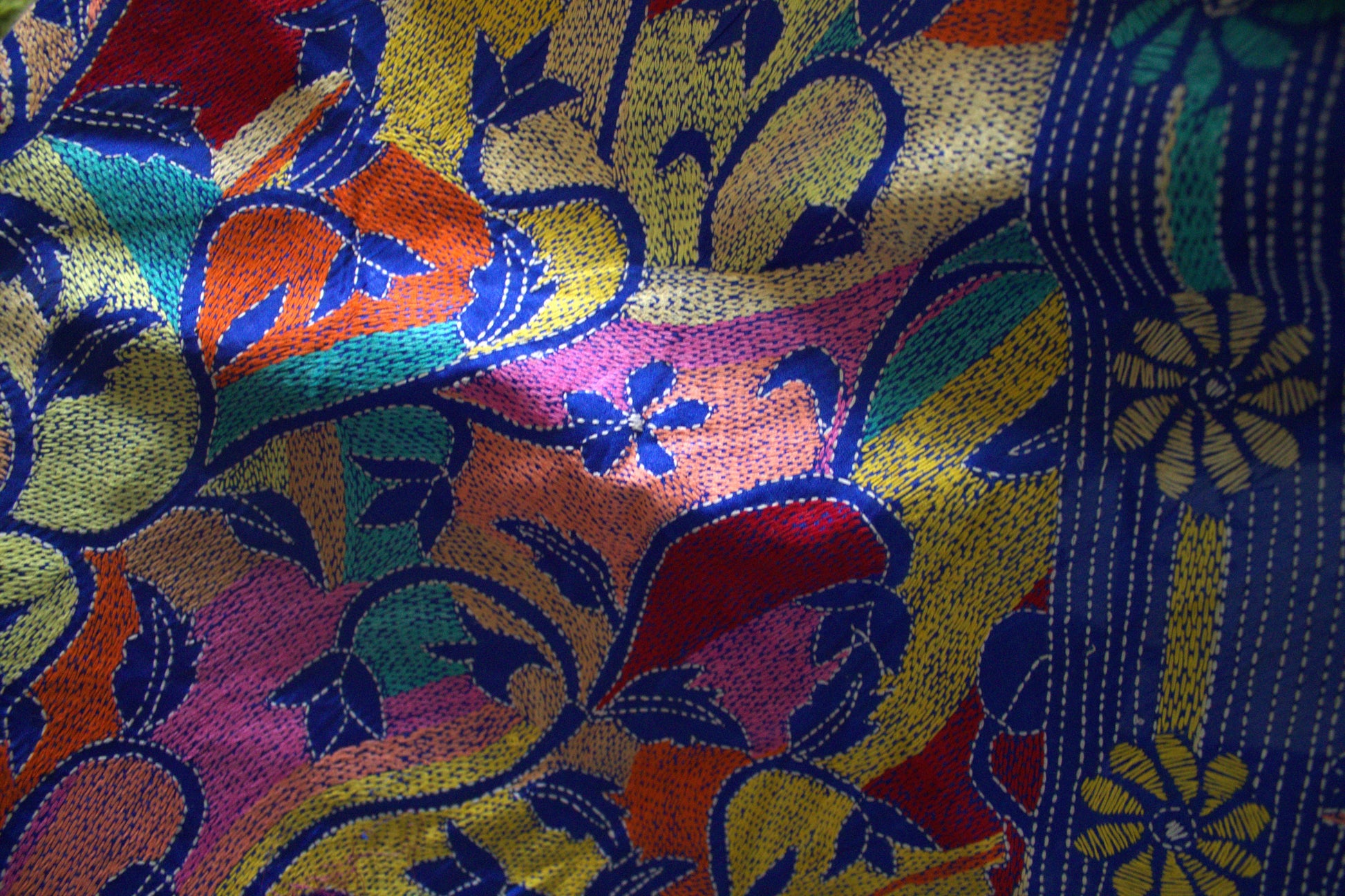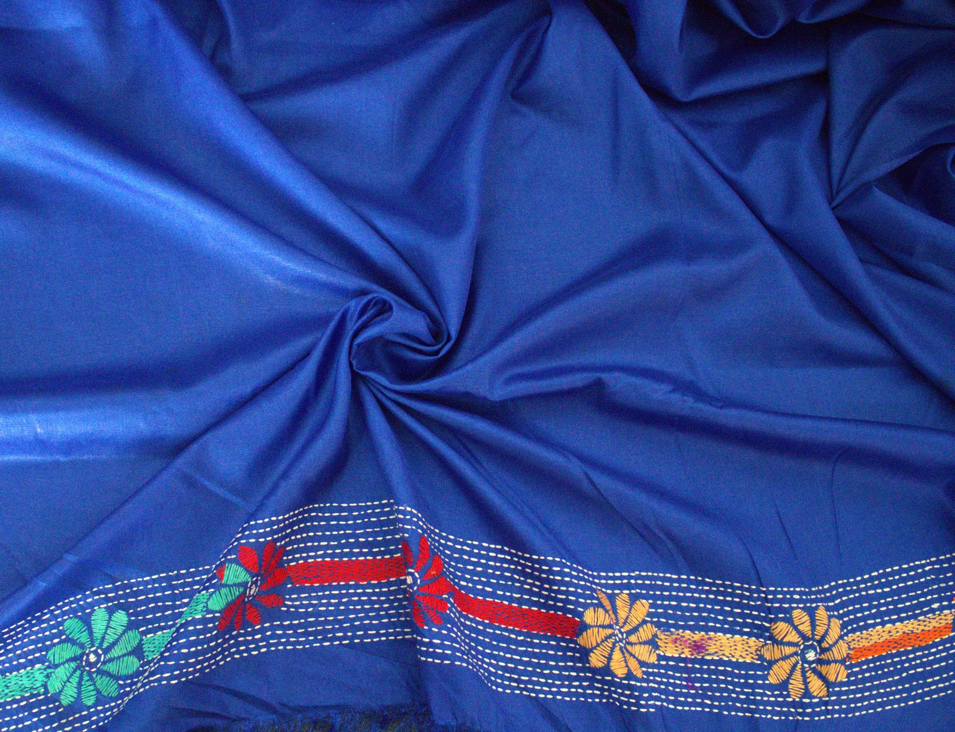 Beautiful Reverse Kantha stitch all over the saree. The saree is 6.3 meters with blouse Piece.