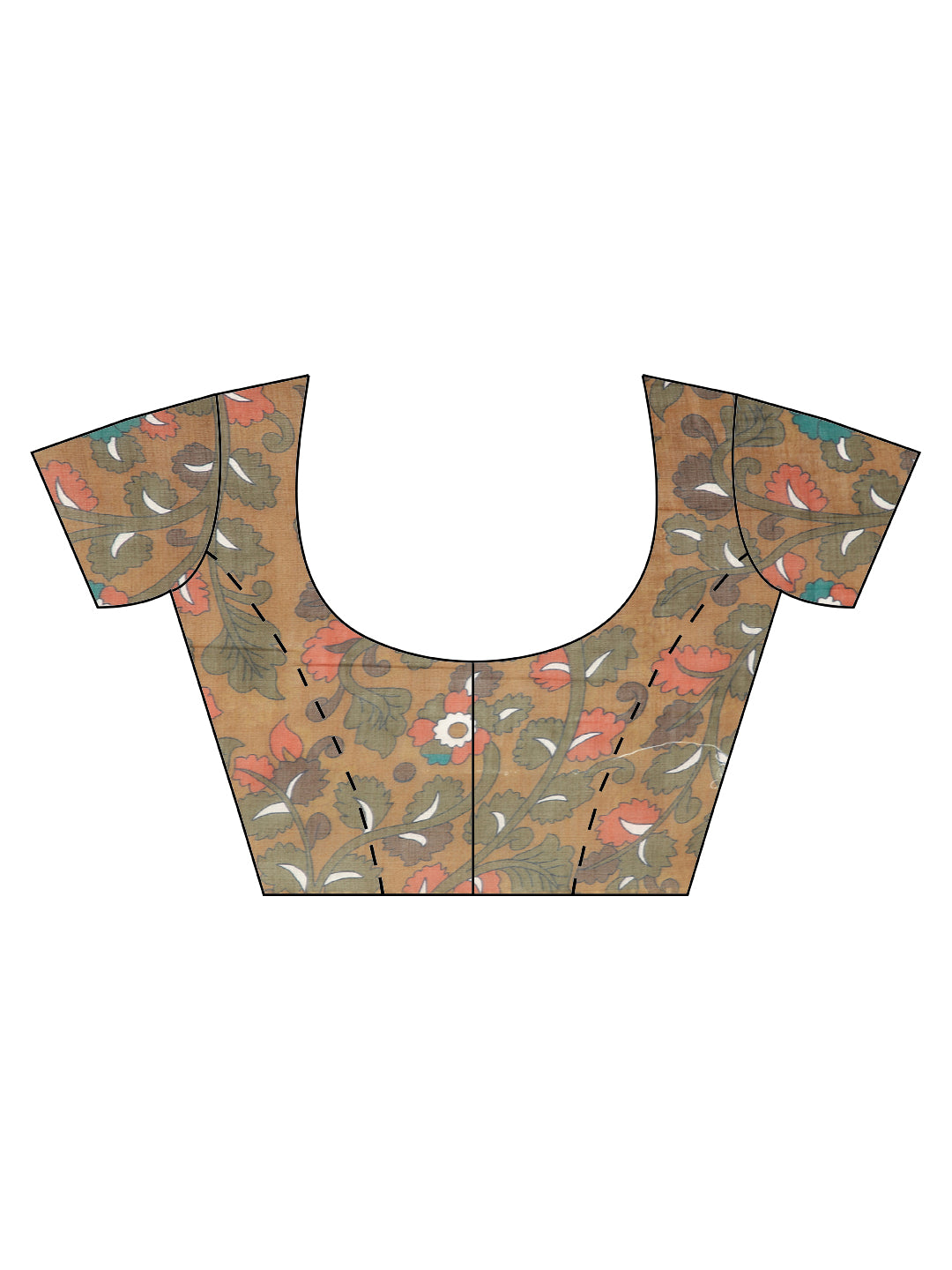 Light yellow Gaumata Saree for you. Jazzy designs in light linen. The blouse is a contrast to accentuate the effect of the saree. Saree inclusive of blouse piece is 6.3 metres.