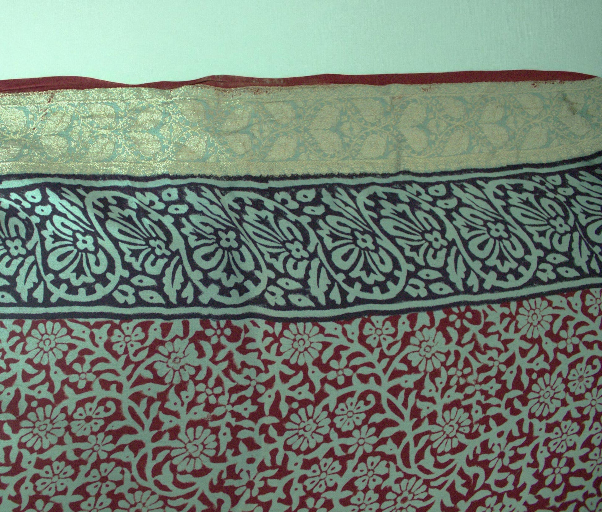 The saree is a Green coloured modal Silk saree. It has pretty handblocked motifs all along with a beautiful pallu. The material is such that the fall is soft and flowing. The saree is 6.3 metres and comes with a blouse piece.