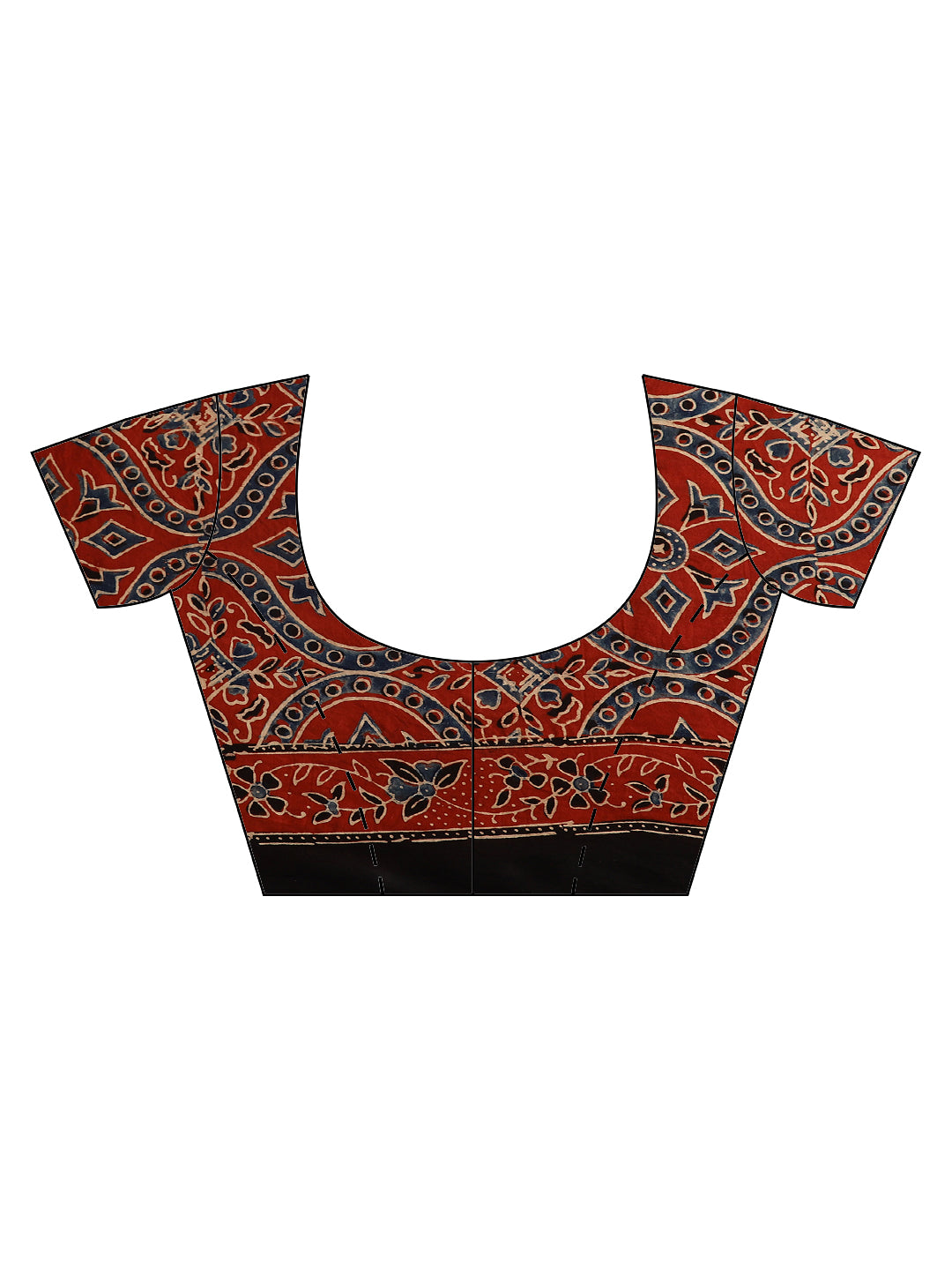 Beautiful Modal silk saree with Ajrakh handblock done on the entire body of the saree. The material is soft and drapes beautifully clinging to the body. The blouse piece is also unique. The saree length is 6.3 metres including blouse.