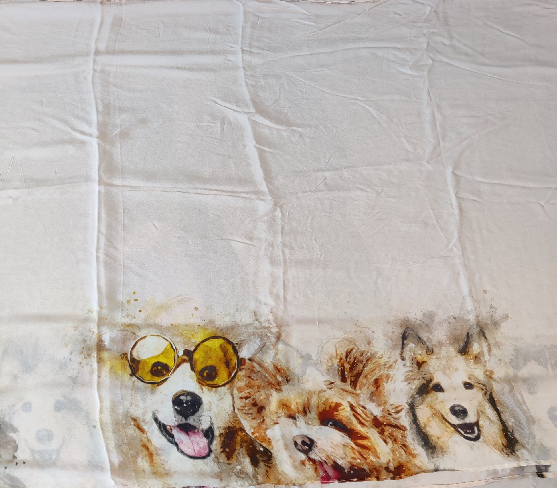The saree in baby pink color has dogs in watercolor prints all over with a blouse piece that has a dog at the back. This is a saree you must own if you have ever loved a dog. (Material Georgette Crepe Length 5.3 meters and Blouse piece 1 meter)